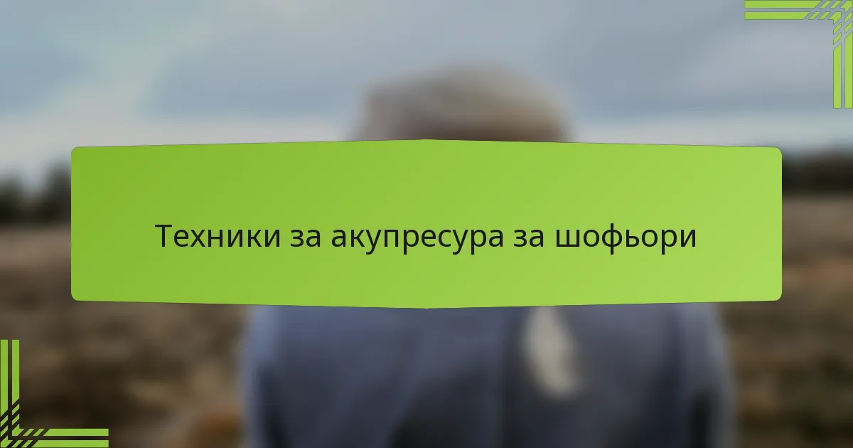 Шофьорите могат безопасно да използват акупунктурни техники, за да подобрят концентрацията, да намалят умората и да облекчат дискомфорта, докато са на път. Чрез прилагане на натиск върху специфични точки на тялото, шофьорите могат да подобрят своята бдителност и общо благосъстояние, без да се разсейват от шофирането.